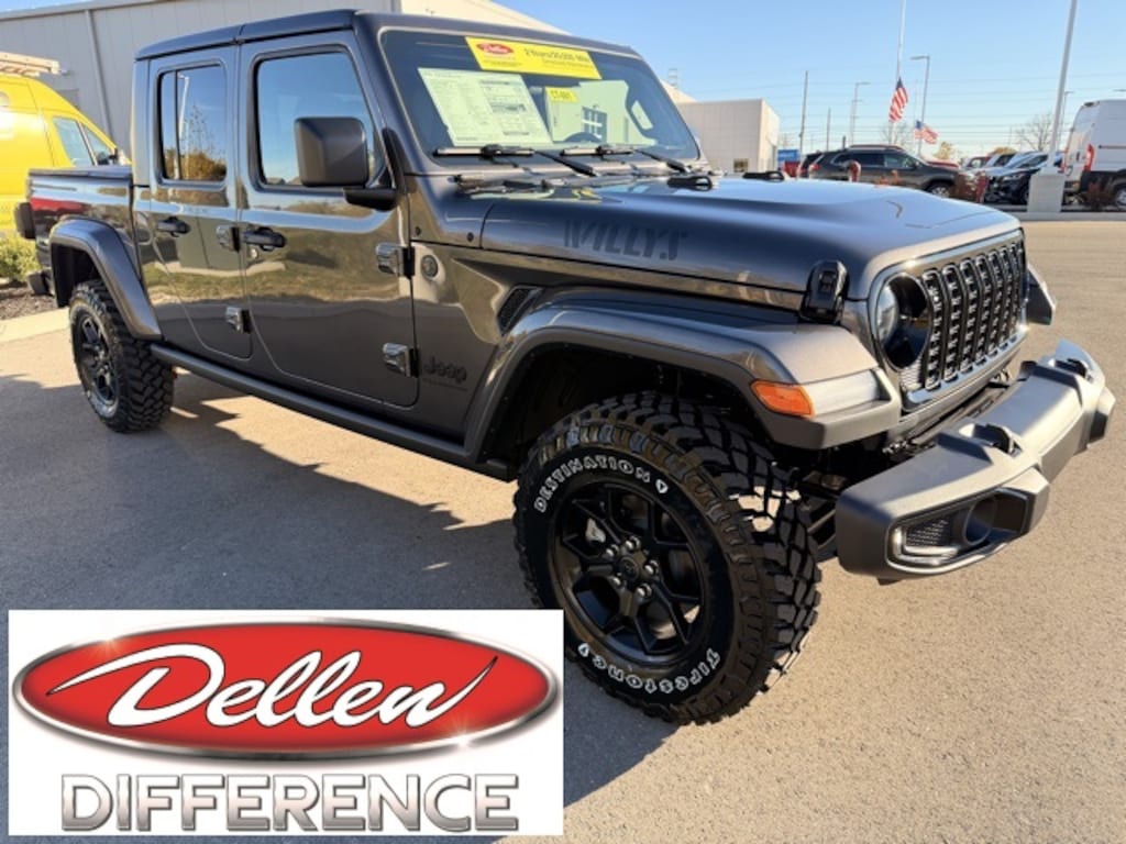 **AT DELLEN CDJR - WE ONLY ADVERTISE PRICES WITH REBATES THAT EVERYONE QUALIFIES FOR!! - IT'S A BETTER WAY TO BUY YOUR VEHICLE - IT'S THE DELLEN WAY! 4-Wheel Drive Decal, 8 Speakers, ABS brakes, Advanced Brake Assist, AM/FM radio: SiriusXM with 360L, Apple CarPlay/Android Auto, Automatic Headlamps, Auxiliary Switches, Black Grille, Brake assist, Class IV Receiver Hitch, Cloth Low-Back Bucket Seats, Cluster 7.0" TFT Color Display, Compass, Convenience Group, Corning Gorilla Glass, Daytime Running Lamp System, Daytime Running Lamps LED Accents, Deep Tint Sunscreen Windows, Delay-off headlights, Driver door bin, Driver vanity mirror, E-Locker Rear Axle, Electronic Stability Control, Emergency/Assistance Call, Front Bucket Seats, Front Door Locks 2-Door Passive Entry, Front fog lights, Front Heavy Duty Red Accent Shock Absorbers, Front LED Fog Lamps, Front reading lights, Full Speed Forward Collision Warning Plus, Heated Front Seats, Heated Steering Wheel, Heavy-Duty Engine Cooling, Illuminated entry, LED Premium Reflector Headlamps, LED Taillamps, Low tire pressure warning, MOPAR All-Weather Slush Mats, MOPAR Soft Tri-Fold Tonneau Cover, MyFlexCare Service Plan, Off-Road Plus Mode, Outside temperature display, ParkView Rear Back-Up Camera, Passenger vanity mirror, Power Heated Mirrors, Power steering, Power windows, Premium Wrapped Steering Wheel, Protection Sill Rails, Quick Order Package 24W Willys, Radio data system, Rear Heavy Duty Red Accent Shock Absorbers, Rear reading lights, Remote keyless entry, Remote Start System, Security Alarm, Speed control, Split folding rear seat, Steering wheel mounted audio controls, Tachometer, Telescoping steering wheel, Tilt steering wheel, Traction control, Trailer Hitch Zoom, Universal Garage Door Opener, Variably intermittent wipers, Wheels: 17" x 7.5" Painted Black, Willys Hood Decal, Willys Suspension.