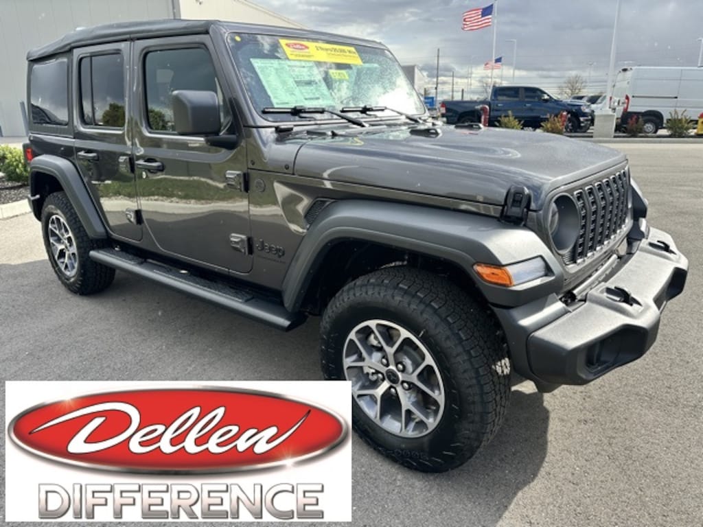 **AT DELLEN CDJR - WE ONLY ADVERTISE PRICES WITH REBATES THAT EVERYONE QUALIFIES FOR!! - IT'S A BETTER WAY TO BUY YOUR VEHICLE - IT'S THE DELLEN WAY! 2-Door Passive Entry, Front Door Locks, 7 & 4 Pin Wiring Harness, ABS brakes, Advanced Brake Assist, Air Conditioning w/Auto Temperature Control, Air Filtering, AM/FM radio: SiriusXM with 360L, Apple CarPlay/Android Auto, Automatic Headlamps, Aux Battery, Auxiliary Switches, Brake assist, Class II Receiver Hitch, Cloth Low-Back Bucket Seats, Cluster 7.0" TFT Color Display, Compass, Convenience Group, Corning Gorilla Glass, Deep Tint Sunscreen Windows, Delay-off headlights, Electronic Stability Control, Emergency/Assistance Call, Enhanced Adaptive Cruise Control, Front Center Armrest w/Storage, Front fog lights, Full Speed Forward Collision Warning Plus, Heated Front Seats, Heated Steering Wheel, Illuminated entry, Low tire pressure warning, MOPAR All-Weather Floor Mats, Mopar Black Tubular Side Steps, Non-Lock Fuel Cap w/o Discriminator, Normal Duty Suspension, Outside temperature display, Panic alarm, ParkView Rear Back-Up Camera, Passenger vanity mirror, Power Heated Mirrors, Premium Wrapped Steering Wheel, Quick Order Package 24S Sport S, Radio data system, Radio: Uconnect 5 w/12.3" Display, Rear reading lights, Remote keyless entry, Remote Start System, Security Alarm, Soft Top Window Storage Bag, Speed control, Stop-Start Dual Battery System, Sun Visors w/Illuminated Vanity Mirrors, Telescoping steering wheel, Tilt steering wheel, Traction control, Trailer Tow & Aux Switch Group, Universal Garage Door Opener, Variably intermittent wipers, Wheels: 17" x 7.5" Gray.
